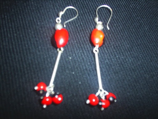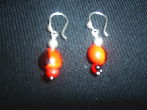 ARETES DE MURANOS NEGROS Y NARANJA Y ROJO Y PLATA 950