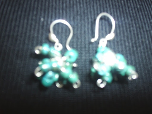 ARETES DE RACIMO DE CRISOCOLA Y PLATA 950